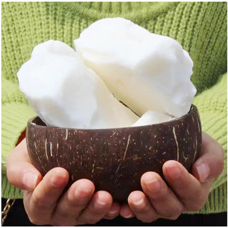 Ang paggawa ng coconut wax ay sumusunod sa isang banayad, eco-friendly na proseso na nagpapanatili ng mga likas na katangian nito, na may mga pangunahing hakbang kabilang ang saponification, hydrogenation, at purification. Una, ang de-kalidad na langis ng niyog ay kinukuha mula sa pinatuyong karne ng niyog (kopra) sa pamamagitan ng cold-pressing o solvent extraction—ang cold-pressing ay mas gusto para sa premium na wax dahil pinapanatili nito ang mas maraming natural na sustansya at iniiwasan ang chemical residue. Susunod, ang saponification ay isinasagawa sa pamamagitan ng pag-react sa langis ng niyog na may base (hal., sodium hydroxide) upang masira ang mga triglyceride sa mga fatty acid at glycerol. Ang mga fatty acid ay pagkatapos ay hydrogenated sa ilalim ng kinokontrol na temperatura at mga kondisyon ng presyon, na nagko-convert ng mga unsaturated fatty acid sa mga saturated upang mapataas ang punto ng pagkatunaw at katatagan ng wax. Panghuli, ang hydrogenated na produkto ay sumasailalim sa mga proseso ng purification gaya ng filtration, bleaching, at deodorization upang alisin ang mga dumi, sobrang fatty acid, at mga amoy, na nagreresulta sa isang dalisay, mataas na kalidad na coconut wax na may pare-parehong katangian. Ang buong proseso ay umiiwas sa mga malupit na kemikal, na umaayon sa berdeng mga pamantayan sa produksyon.