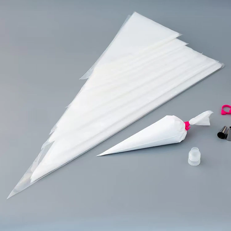 Ang mahusay na pagganap ng aming Piping Bag ay nagmumula sa mataas na pamantayang pagpili ng materyal at katangi-tanging pagkakayari. Gumagamit ito ng de-kalidad na materyal na LDPE, na chemically stable, wear-resistant, at corrosion-resistant, hindi madaling matanda o deform, at makatiis ng katamtamang mga pagbabago sa temperatura nang walang paglambot o pag-crack. Pinapaganda ng double-layer na disenyo ang tigas at airtightness ng bag—epektibong pinipigilan ang pag-leak ng wax o iba pang materyales mula sa gilid o ibaba, at tinitiyak ang makinis na extrusion nang walang air leakage. Ang makapal na bersyon, sa partikular, ay nagtatampok ng reinforced material na explosion-proof at tear-resistant, kahit na sa ilalim ng malaking extrusion force, ito ay nananatiling buo. Bukod pa rito, tinitiyak ng pare-parehong kapal ng bag ang pare-parehong bilis at puwersa ng extrusion, na iniiwasan ang hindi pantay na hugis na dulot ng hindi pantay na kapal.