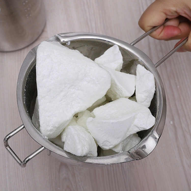 Ang parehong anyo ng rapeseed wax ay inengineered para sa madaling pagproseso, na nag-aalok ng makabuluhang mga pakinabang sa parehong pang-industriya at mga setting ng DIY. Ang block variant, na may pinakamainam na 48℃ melting point, ay mabilis at pare-parehong natutunaw sa ilalim ng kontroladong pag-init (karaniwan ay sa pamamagitan ng double boiler) nang walang espesyal na kagamitan, na binabawasan ang pagkonsumo ng enerhiya at oras ng produksyon. Ang variant ng flake, na may 70℃ na melting point at manipis na istraktura, ay mabilis na natutunaw kapag pinaghalo sa iba pang mga wax, na tinitiyak ang pantay na pamamahagi at tumpak na pagsasaayos ng mga temperatura ng pagkatunaw. Ang natunaw na rapeseed wax—anuman ang anyo—ay nagpapakita ng mahusay na pagkalikido, tinitiyak na puno, pantay ang pagpuno ng mga amag o lalagyan at pinapaliit ang mga depekto gaya ng mga bula, bitak, o hindi pantay na ibabaw. Ito ay lumalamig at tumitibay sa tuluy-tuloy na bilis, na nagbibigay ng sapat na oras sa mga crafter at manufacturer para ayusin ang wax, magdagdag ng mga dekorasyon, o ihalo sa iba pang mga materyales bago itakda. Ang block form ay madaling hawakan—paggupit o grating ay nagbibigay-daan para sa tumpak na pagkontrol sa dosis—habang ang flake form ay nagpapadali ng mabilis na paghahalo, na parehong binabawasan ang materyal na basura. Ang parehong mga variant ay walang kahirap-hirap na demold, pinapanatili ang kanilang hugis at texture nang hindi nag-crack o dumidikit sa mga amag, pinapahusay ang kahusayan sa produksyon at binabawasan ang pinsala sa produkto.