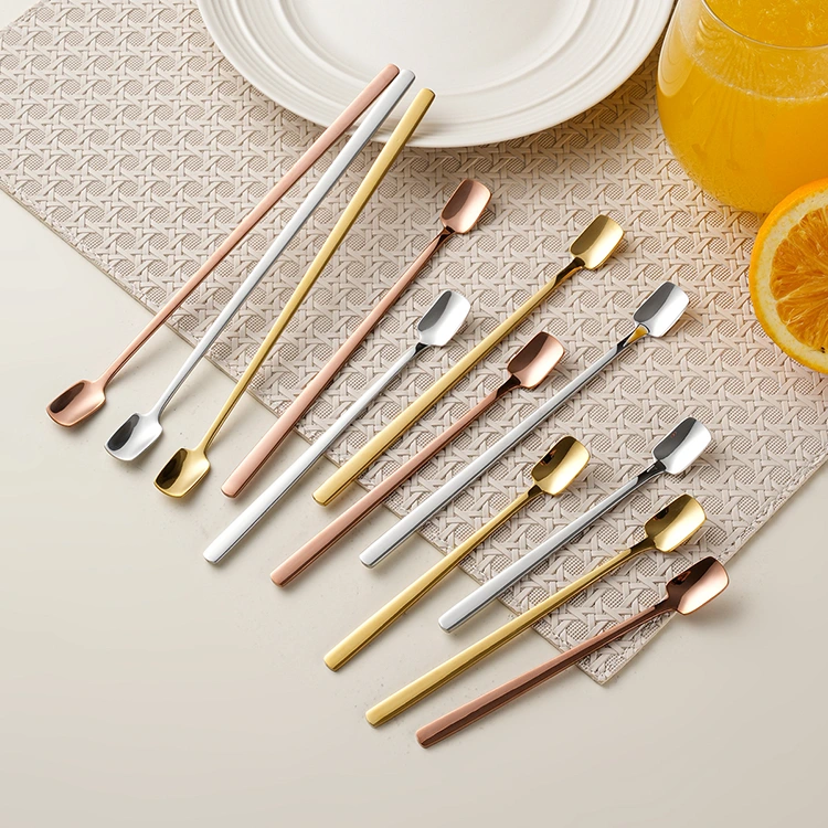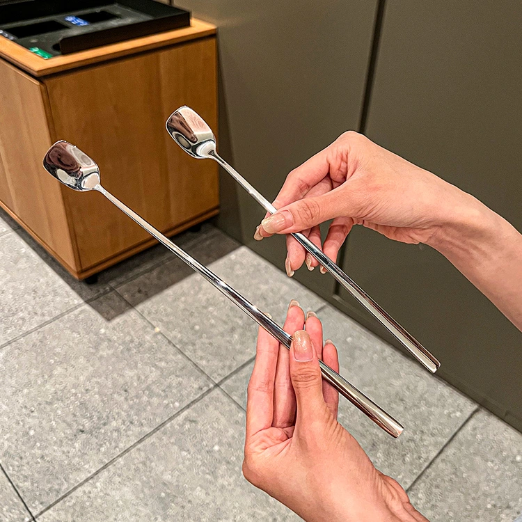 Ang aming Square Head Stainless Steel Mixing Spoon ay nagtatampok ng siyentipiko at makatao na disenyo, na nagsasama ng functionality at kaginhawahan upang mapahusay ang karanasan ng user. Ang disenyo ng square head ay ang pangunahing highlight, na naiiba sa tradisyonal na round head spoons: pinapataas ng flat square head ang contact area sa hinalo na materyal (melted wax, coffee, dessert, atbp.), na nagbibigay-daan sa mas mahusay at pare-parehong paghalo, pag-iwas sa hindi pantay na paghahalo na dulot ng hindi sapat na contact. Ang parisukat na gilid ay makinis na pinakintab, nang walang burr o matutulis na sulok, na hindi makakamot sa panloob na dingding ng mga lalagyan ng kandila o mga kagamitan sa pagkain, at madaling ma-scrape ang natitirang materyal sa dingding ng lalagyan, na binabawasan ang basura. Ang hawakan ay gumagamit ng isang ergonomic na disenyo, na may makinis na ibabaw at naaangkop na kapal, na akma sa kamay para sa kumportableng pagkakahawak; ang haba ng hawakan ay tumutugma sa pangkalahatang detalye, na tinitiyak na ang mga user ay madaling makahalo nang hindi napapaso ng mga materyales na may mataas na temperatura. Ang integral na proseso ng pagbuo ay pinagtibay para sa kutsara, na may matatag na istraktura at walang mga puwang, na pumipigil sa akumulasyon ng dumi at tinitiyak ang madaling paglilinis.