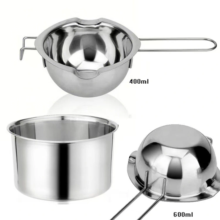 Nagbibigay kami ng sari-saring mga detalye upang matugunan ang iba't ibang mga pangangailangan sa paggamit, na malinaw na makikita sa hitsura ng produkto: ang panloob na palayok ay nilagyan ng pinagsamang 304 stainless steel na hawakan para sa madaling paghawak at paglilipat, na may makinis at compact na hugis na akmang-akma sa panlabas na palayok, na magagamit sa dalawang kapasidad—400ml (angkop para sa maliit na batch na pagtunaw) at 600ml na mga sangkap. Ang panlabas na palayok, na idinisenyo para sa pagpainit ng paliguan ng tubig, ay may dalawang sukat na pagpipilian na perpektong tumutugma sa panloob na palayok: 14×9.5cm (diameter×taas) na may kapasidad na 1200ml, at 16×10cm (diameter×taas) na may kapasidad na 1600ml, na tinitiyak ang sapat na dami ng tubig para sa matatag na pag-init habang pinapanatili ang isang maayos at eleganteng hitsura.